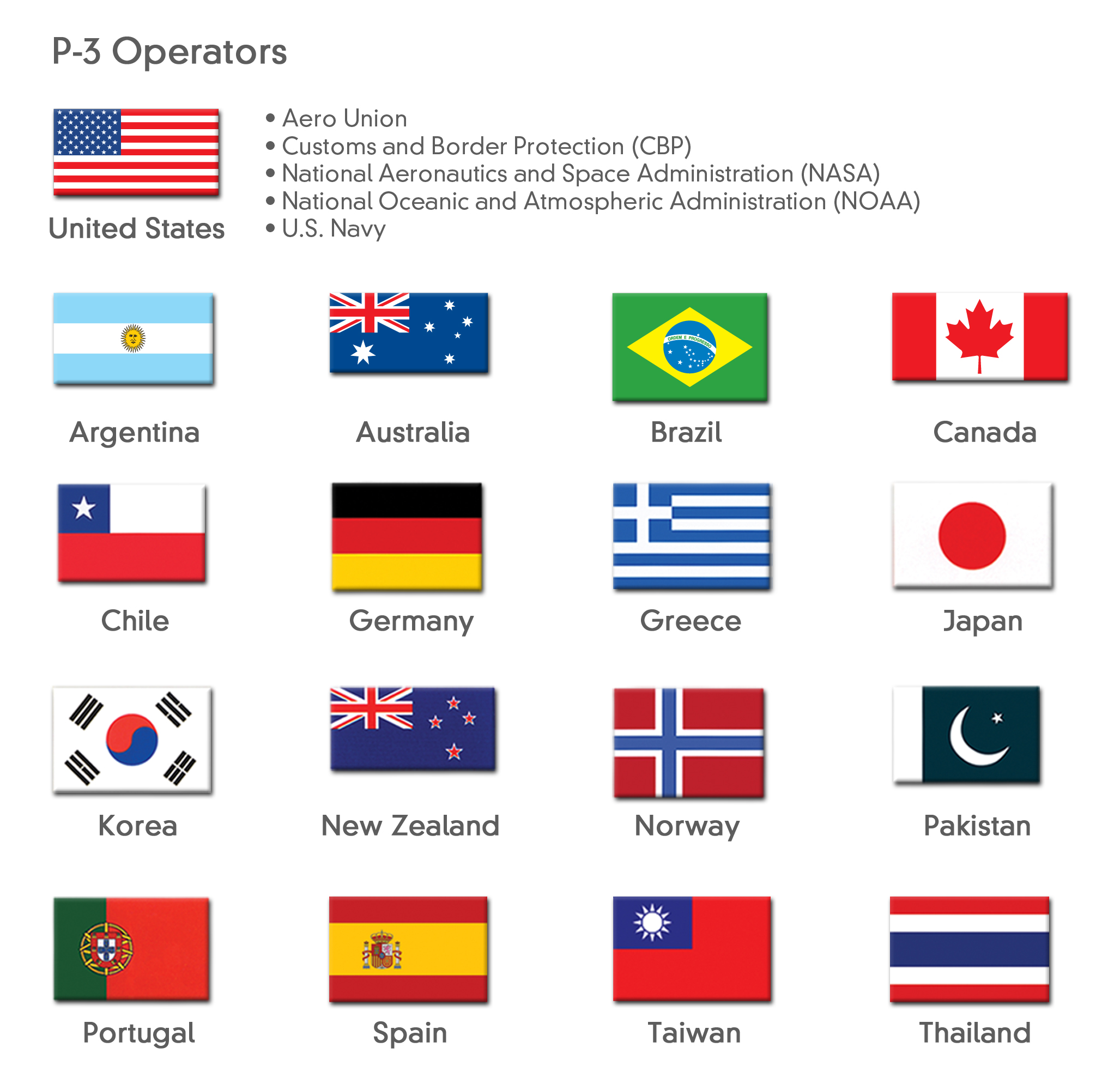 With more than 400 aircraft worldwide flown by 21 operators in 17 countries, the P-3 remains a relied-upon asset today. Time and time again, the P-3 proves that it is remarkably well adapted for maritime patrol and support.
